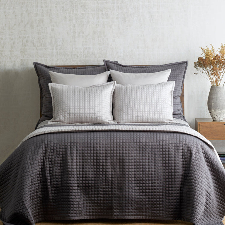 King Set: Ready-to-Bed 2.0 Quilted 36x30 Pillow in Grey including insert (x2) Ready-to-Bed 2.0 Quilted Coverlet in Grey/King Ready-to-Bed 2.0 Quilted Coverlet in Silver/King Ready-to-Bed 2.0 Sham in Silver/Euro (x2) Ready-to-Bed 2.0 Quilted Sham in Silver/King (x2) Ready-to-Bed 2.0 Sheet Set in Silver/King