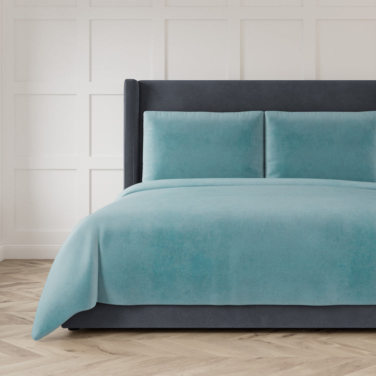 Modern Velvet takes a hatched weave of velvet and elevates it into a modern look. Box pillows and padded coverlets add a perfect touch to any bed.